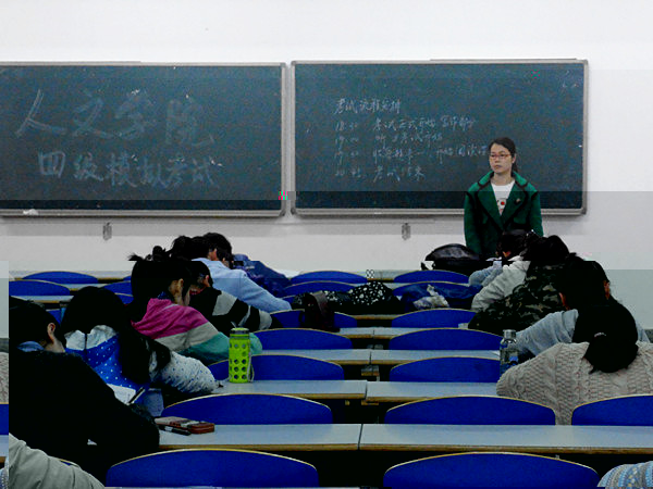 考試中,輔導員賀麗老師分别到各個考場巡查,認真查看同學們的答題情況。學院團委學生會的相關負責人員擔任監考工作,賀老師交代在場的監考人員嚴格監考,保證考試的順利進行。