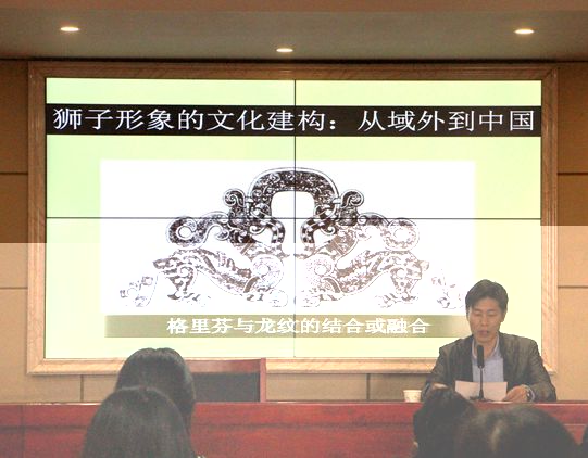 張法教授首先從地中海文化中的獅子形象講起。他向大家介紹到,地中海地域中獅子形象有兩個基本的演進方向:一是作為負面形象消亡或被殺死;二則是被納入到理性文化之中成為威儀和力量的象征。講到娜娜型獅子在跨文化中的定型時,張法教授指出:“娜娜型獅子是獅子是神的脅侍,不脫離神而存在,或是獅在女神腳下,這是從伊南娜開始就經常出現的形象。”而在印度文化中的獅子,獅與最高神關聯了起來,即印度文化的最高神被稱為獅子,在于一種具有印度特性的觀念。中國文化對獅子文化形象的接受,則按中國固有的動物觀念體系進行的安排。