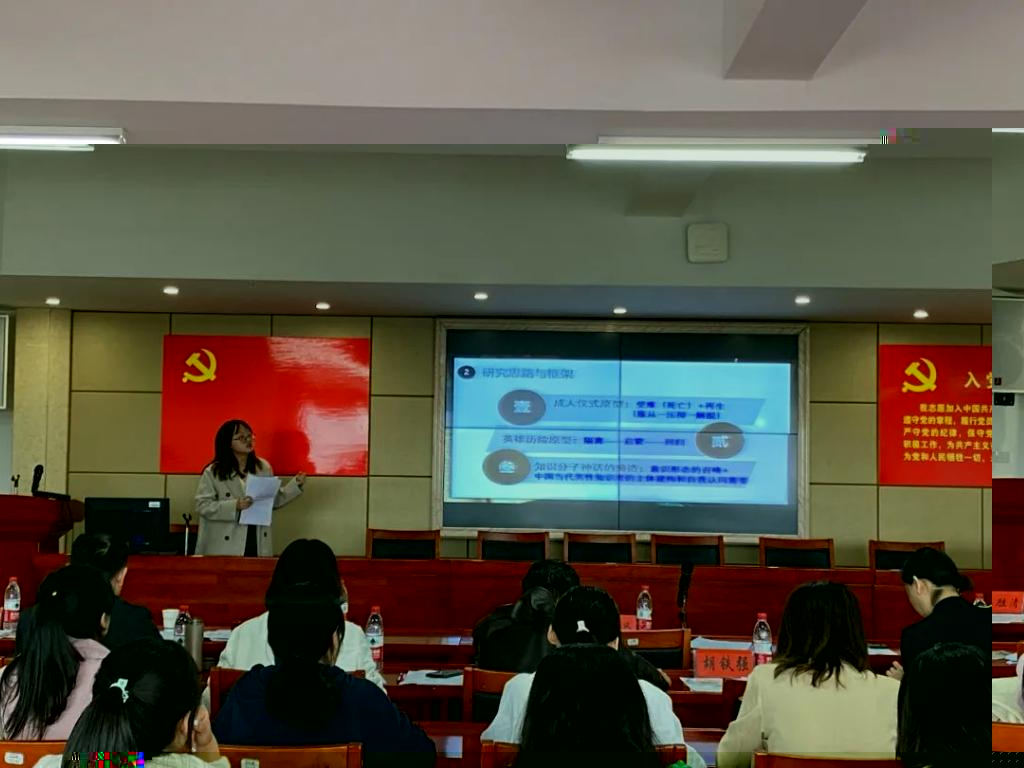 田思琦同學分享的題目是《知識分子的‘成人儀式’與‘英雄曆險’——論張賢亮小說的情節原型》,具體從成人儀式原型、英雄曆險原型與知識分子神話的締造等三個層面進行了闡述。