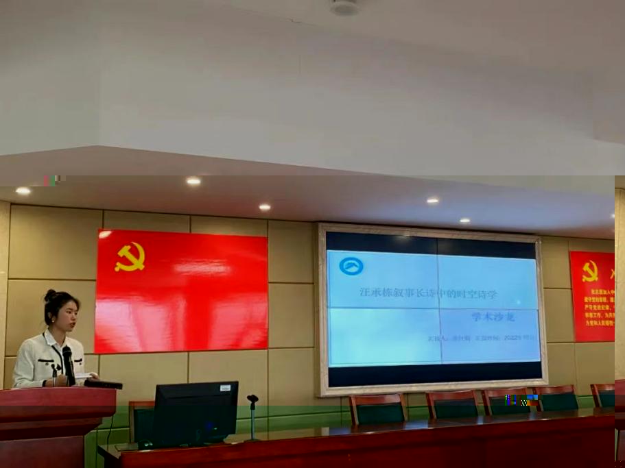 熊杜娟同學分享的題目是《汪承棟叙事長詩中的時空詩學》,從時間的延宕和空間的拓展、時空意象的多維呈現形态、長詩作品中時空結構的塑構三個層面進行了剖析。