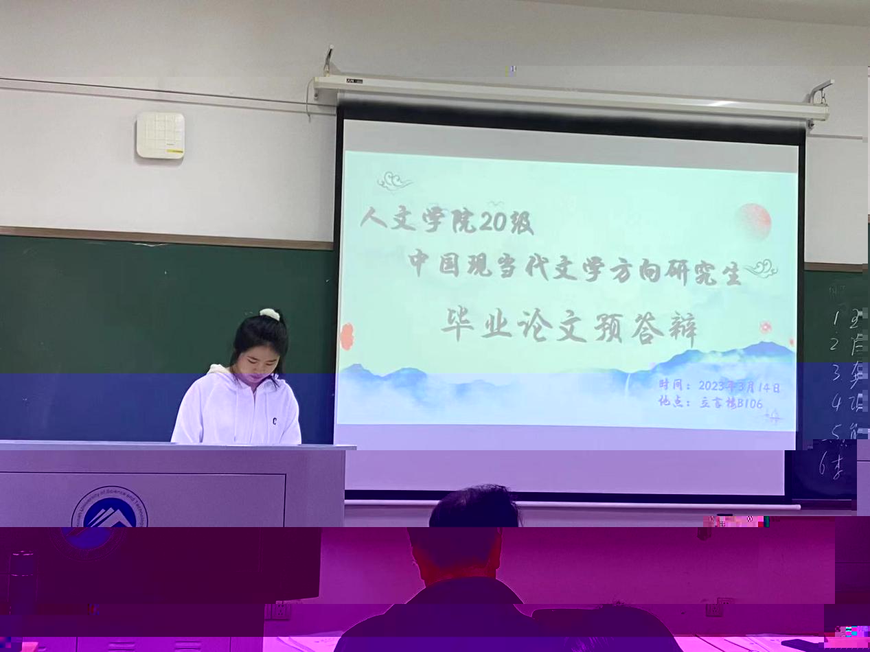2023年3月14日,我院2020級中國現當代文學方向研究生畢業論文預答辯在立言樓B106順利舉行。此次預答辯由方向負責人劉郁琪教授主持,彭在欽教授、袁星潔教授、吳投文教授、劉郁琪教授、梁小娟副教授擔任此次預答辯的評委。20級現當代文學方向的田思琦、項膑之、肖睿壑、李慧娟、王禾陽、龔夢姣和熊杜娟7位同學參與預答辯。