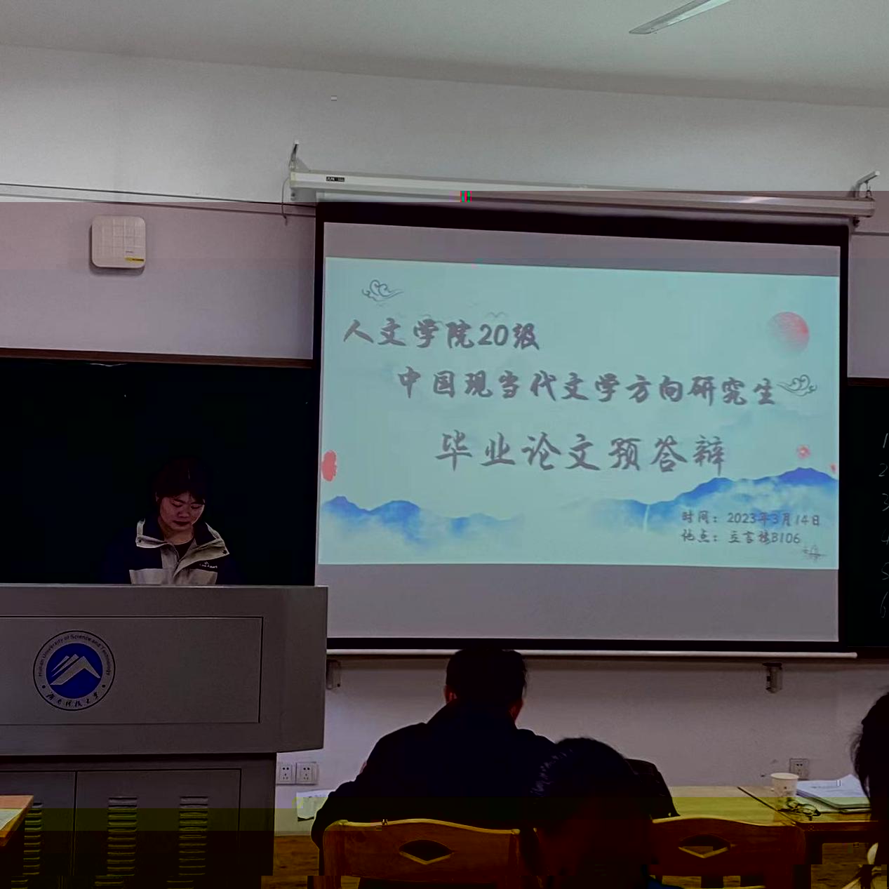 項膑之同學的碩士論文題目是《論林白小說的女性成長書寫》。該論文主要以女性受困于社會、政治權利的固定中心作為背景,從女性成長空間的兩個角度、女性覺醒面臨的困境與突圍、以及女性成長的主體建構三個方面進行闡述。劉郁琪老師指出文章内在邏輯有所欠缺,并讓其對文章的内在邏輯進行具體闡述。