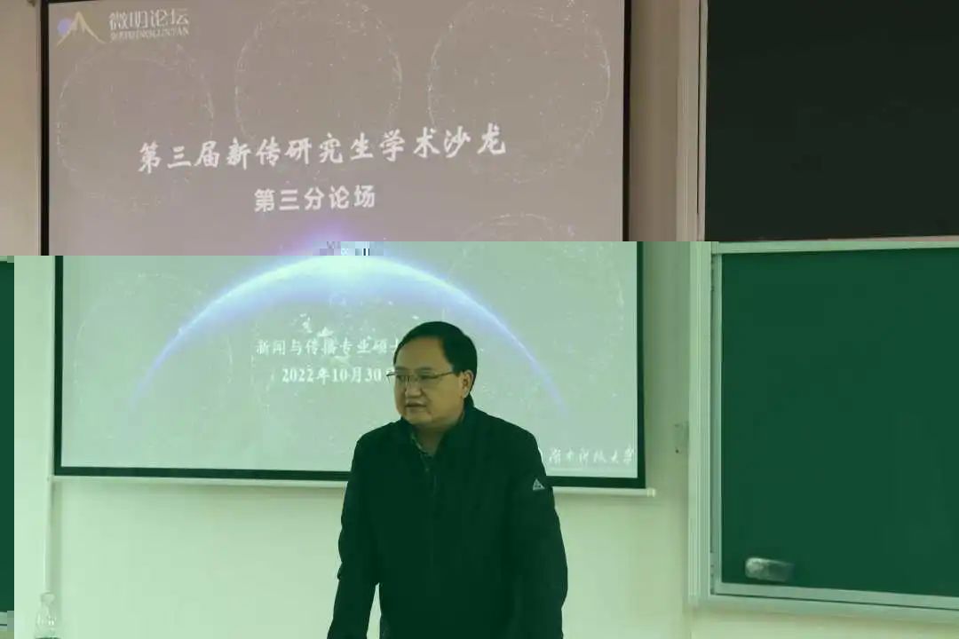 10月30日,2003网站太阳集团“學而思” 研究生學術沙龍之新聞與傳播專業“微明論壇”在昭潭書院校區第二教學樓成功舉辦。此次學術論壇選定了“媒介技術與當代新聞”“媒介經營與管理”“新媒體與民俗文化傳播”三個主題方向,來自2021級新聞與傳播專業的39名研究生聚焦不同主題進行了學術彙報與精彩分享,6名2003网站太阳集团新聞與傳播專業導師受邀出席并擔任評委。此外,2022級45名新傳研究生也參加了本次論壇。